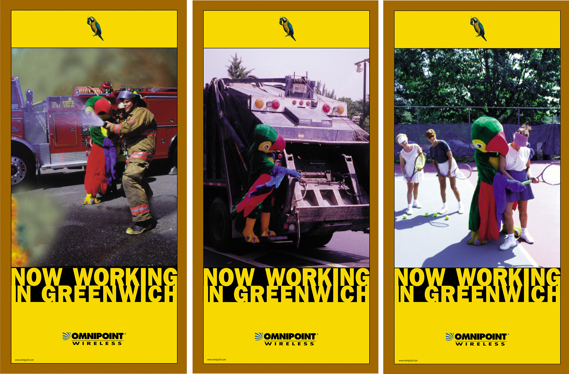 Using the Omnipoint Parrot logo personified we shot the campaign in a working class New Jersey town where the Parrot got to work. 14 print ads & 14 commercials in a day. Shot on a 16mm Bolex camera this campaign was about their expansion into towns in the tri-state area. An example of down and dirty, get it done style.